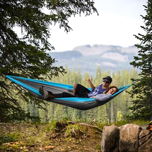 Supermukava riippumatto, jossa mahtuu kaksi henkilöä makuulle vierekkäin! Valmistettu vahvistetusta nailonista kestämään yli 200 kg samanaikaisesti! Taitettuna se vie lähes olemattomasti tilaa, mikä tekee siitä täydellisen valinnan mukaan otettavaksi leirintään, veneilyyn, rannalle tai metsäretkille!