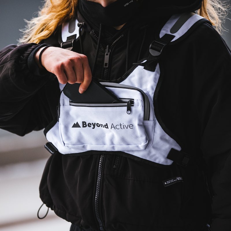 Kestävä heijastinliivi, joka on sekä tuulen- että vedenpitävä. Liivi sopii täydellisesti lenkille tai kävelylle. Heijastinliivissä on kaksi taskua, pienempi tasku pienemmille tavaroille ja suurempi tasku, johon mahtuu matkapuhelin tai lompakko. Liivissä on heijastimet edessä, takana ja olkahihnoissa, joten näyt varmasti näkyvän kaikista suunnista.